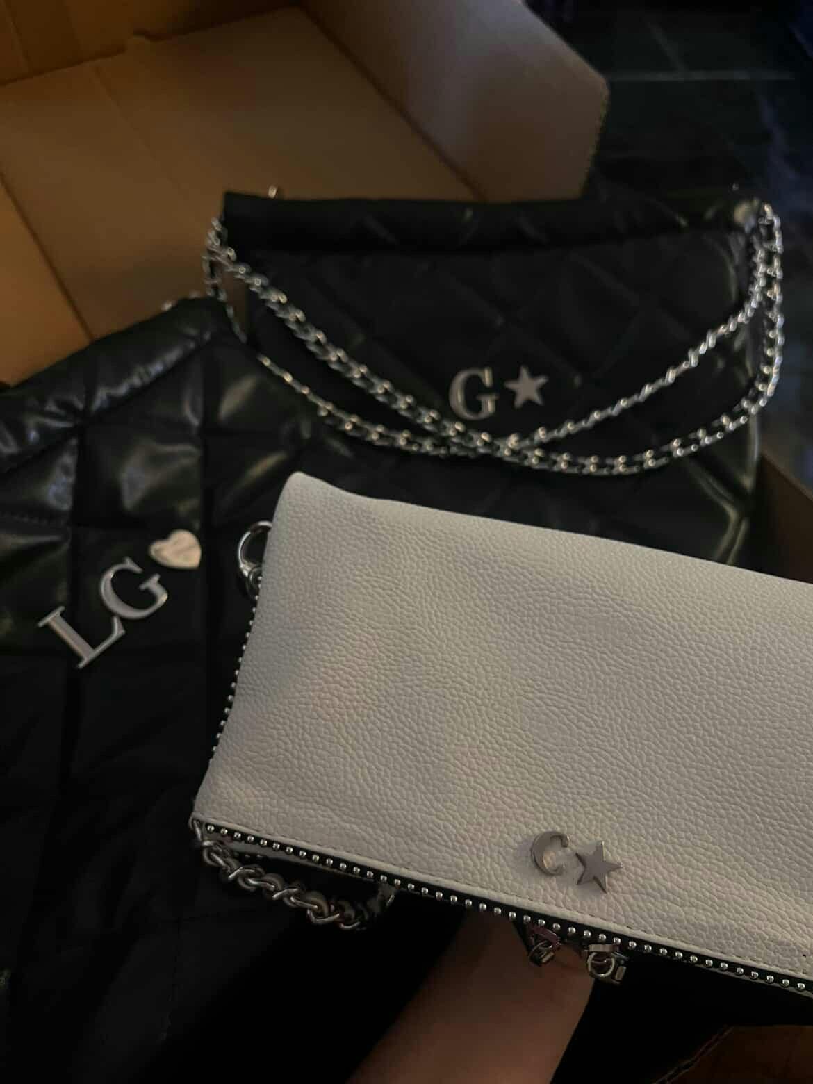 Cadenas fijas para usar como shoulder bag, entrelazadas con piel sintética del color del bolso.